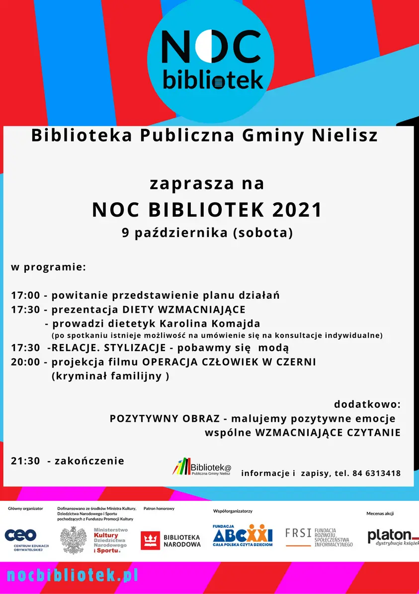 Zapraszamy do udziału w Nocy Bibliotek - ogólnopolskiej akcji, której towarzyszyć będzie hasło „CZYTANIE WZMACNIA”, to wielkie święto bibliotek i czytania. Przypominamy, że w tym roku także obowiązują limity oraz zapisy.
