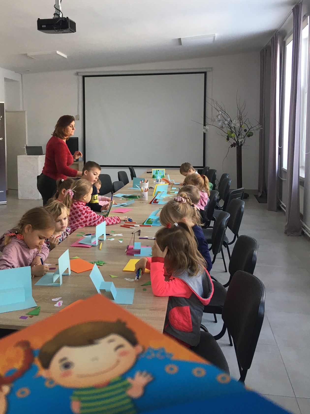 BIBLIOTEKA MAŁEGO CZŁOWIEKA. Kto najbardziej cieszy się z zimy?, kto uwielbia prezenty dostawać ale także robić i obdarowywać ? – oczywiście nasi najmłodsi. Tym razem w pięknym zimowym dniu 19.12 br. odwiedziły bibliotekę dzieci z Oddziału Przedszkolnego Szkoły Podstawowej im. Jana Króla w Nieliszu wraz z p. Marią Rycaj. Na początek wybraliśmy się na spacer po bibliotece w poszukiwaniu świątecznych dekoracji i książek o tematyce zimowo- świątecznej, których dzieci wypatrzyły bardzo dużo. Po spacerze usiedliśmy przy stole by porozmawiać o tym co zobaczyliśmy w bibliotece oraz o tradycjach i zwyczajach jakie w naszych domach w grudniu kultywujemy. Było czytanie, zgadywanie i wiele wiele rozmów. Oczywiście podczas spotkania tworzyliśmy także zimowe kartki 3D, które nasi najmłodsi podarują w prezencie swoim najbliższym wraz z życzeniami Wesołych Świat! (taki był plan