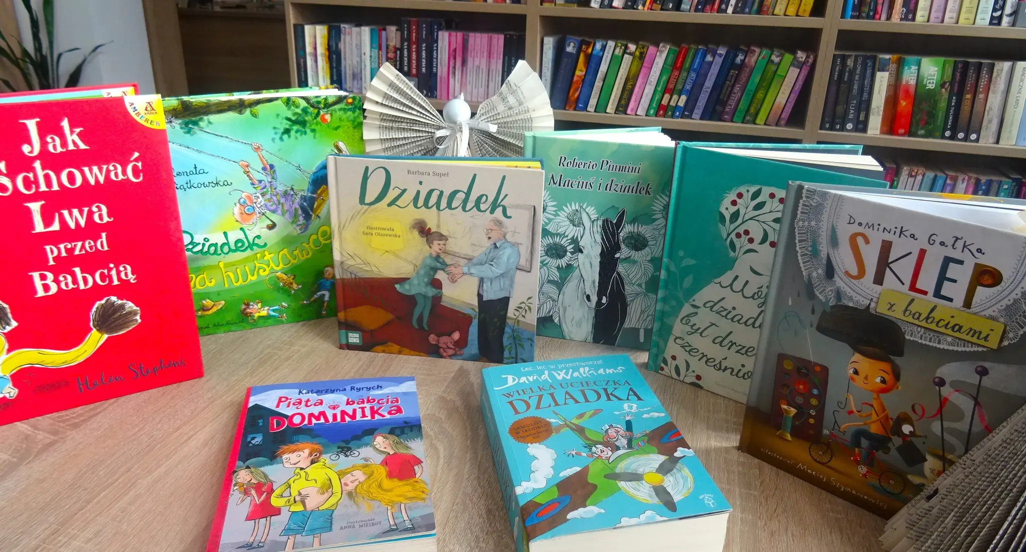oto nasze propozycje:"Piąta babcia Dominika"- Katarzyna Ryrych, ilustrowała Anna Wielbut, Edgard"Wielka ucieczka Dziadka"- David Walliams, Dom Wydawniczy Mała Kurka"Maciuś i dziadek"- Roberto Piumini, ilustrowała Ewelina Wajgner, Wydawnictwo Bona"Mój dziadek był drzewem czereśniowym"- Angela Nanetti, ilustracje: Anastazja Stefurak, Nasza Księgarnia"Sklep z babciami"- Dominika Gałka, ilustracje: Maciej Szymanowicz, Wydawnictwo Literatura"Dziadek"- Barbara Supeł, Ilustrowała Sara Olszewska, Zielona Sowa"Dziadek na huśtawce"- Renata Piątkowska, Ilustracje: Artur Nowicki, Bis"Jak schować Lwa przed Babcią"- Helen Stephens, Wydawnictwo Amber