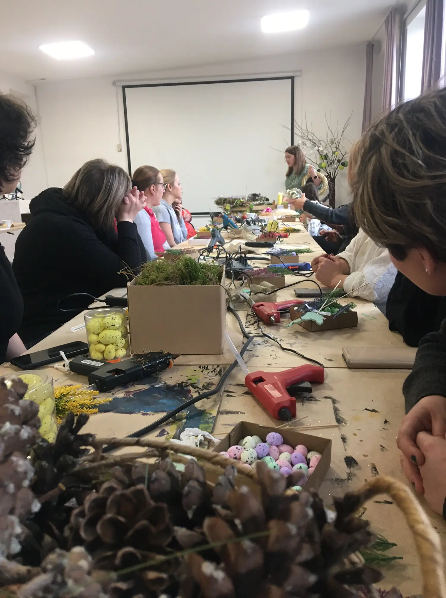 Za nami czwartkowe (02.03) wielopokoleniowe i niezwykle kreatywne warsztaty tworzenia stroików wiosenno-świątecznych. Warsztaty nawiązują do stosunkowo młodej w Polsce tego typu dekoracji wielkanocnej. Pani Józefina Tatara Josephina's dress– jak zwykle zresztą postarała się, by każda uczestniczka własnoręcznie wykonała stroik od podstaw, na słomianej bazie lub korzystając z gałązek brzozy, do dekoracji posłużyły suche źdźbła traw, drobne kwiatki, piórka, jajeczka itp. Dodatkowo z „materiałów z odzysku” uczestniczki mogły wykonać zajączka, tym razem niezbędne było wsparcie prowadzącej, która dzięki umiejętności szycia na maszynie zszywała wykrojone z różnych tkanin zajączki. Zrobione dekoracje z pewnością będą pięknie prezentowały się na wielkanocnym stole. Dziękujemy prowadzącej oraz wszystkim uczestniczkom za twórczo spędzony czasz . Oto nasza fotorelacja...