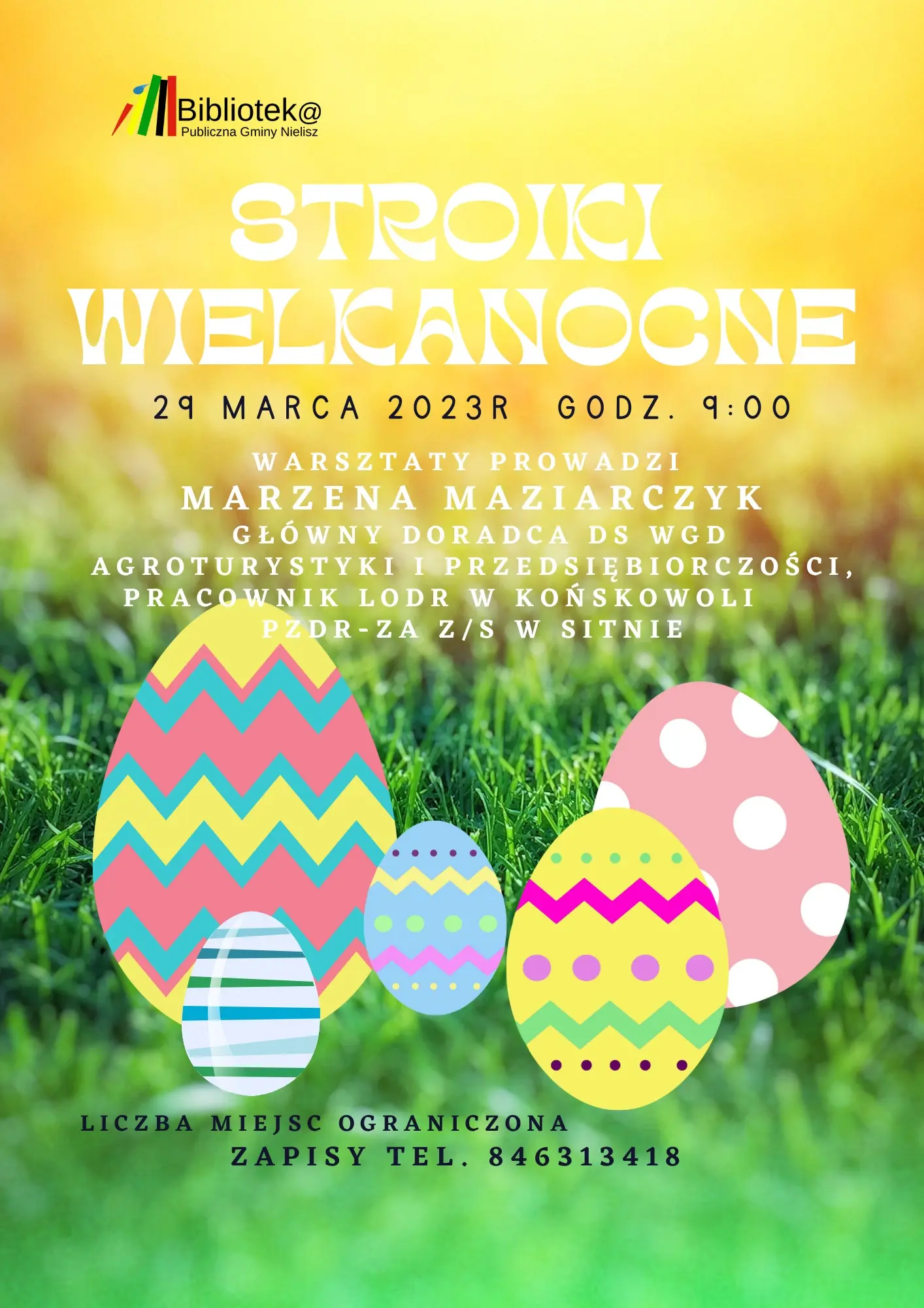 Warsztaty rękodzielnicze 22.03.2023 bpgnielisz 0 Święta Wielkanocne coraz bliżej, zapraszamy na warsztaty rękodzielnicze, przypominamy że obowiązują zapisy TwitterFacebookPinterestGoogle+RSS Previous article Spotkanie autorskie- relacja Next article LEKCJA BIBLIOTECZNA bpgnielisz