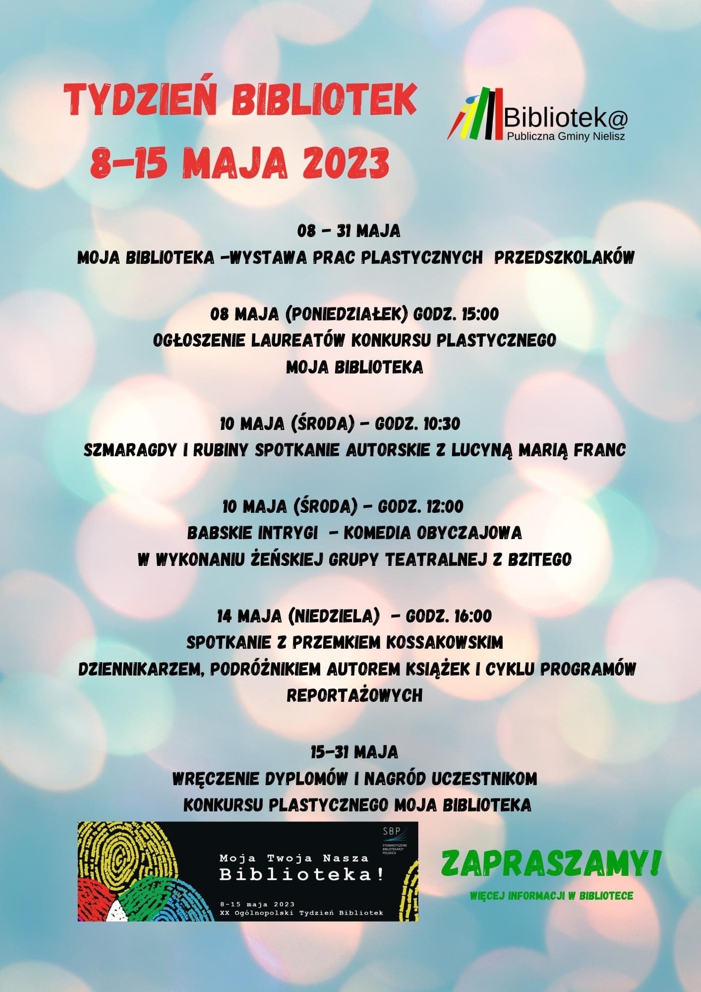 Tydzień Bibliotek 8-15 maja 2023 08.05.2023 bpgnielisz 0 TwitterFacebookPinterestGoogle+RSS Previous article BIBLIOTEKA MAŁEGO CZŁOWIEKA Next article Tydzień Bibliotek 2023 za nami cd. bpgnielisz