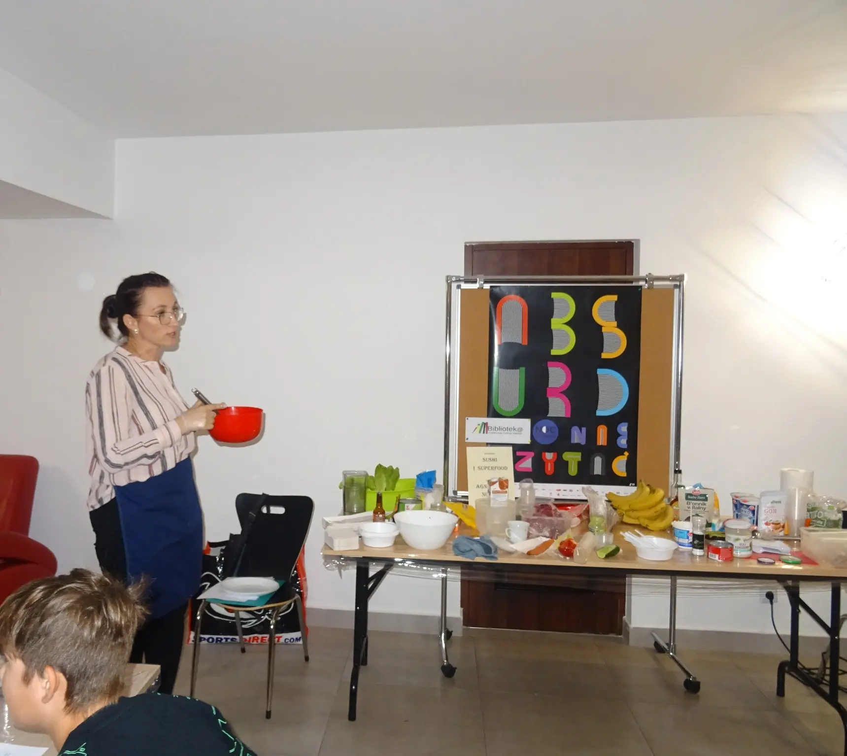 Absurd nie czytać , Noc Bibliotek2023 – wspomnienie super wybornych warsztatów kulinarnych „W krainie sushi i superfood” przygotowanych i poprowadzonych przez Panią Agnieszka Nowak specjalistę branży gastronomicznej, miłośniczkę smaków kuchni różnych stron świata. Pod okiem profesjonalisty można było wyczarować naprawdę pyszne i piękne smakowitości, poznać i posmakować wiele niesamowitych produktów. Było dużo pracy, dużo nauki, powstawały kolejne dania takie jak: sushi o wielu smakach, smoothie bowl, sałatka z kaszy quinoa, z pieczonym burakiem i serem kozim, pudding chia.