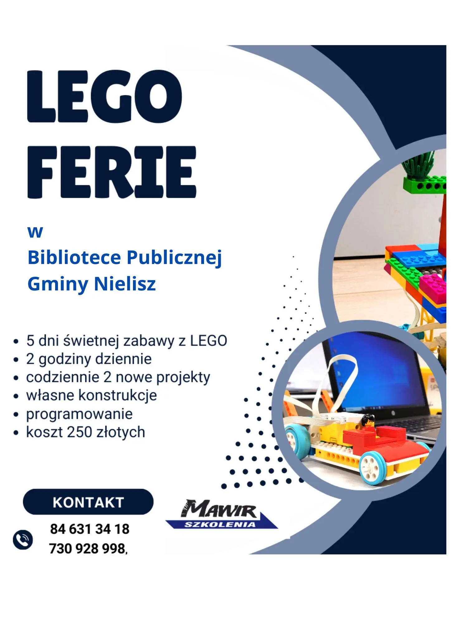 Przedstawiamy jedną z propozycji spędzenia ferii zimowych w bibliotece, zajęcia (budowanie, kodowanie, projektowanie i programowanie) odbędą się pod warunkiem zebrania grupy. Więcej szczegółowych informacji pod nr 730 928 998