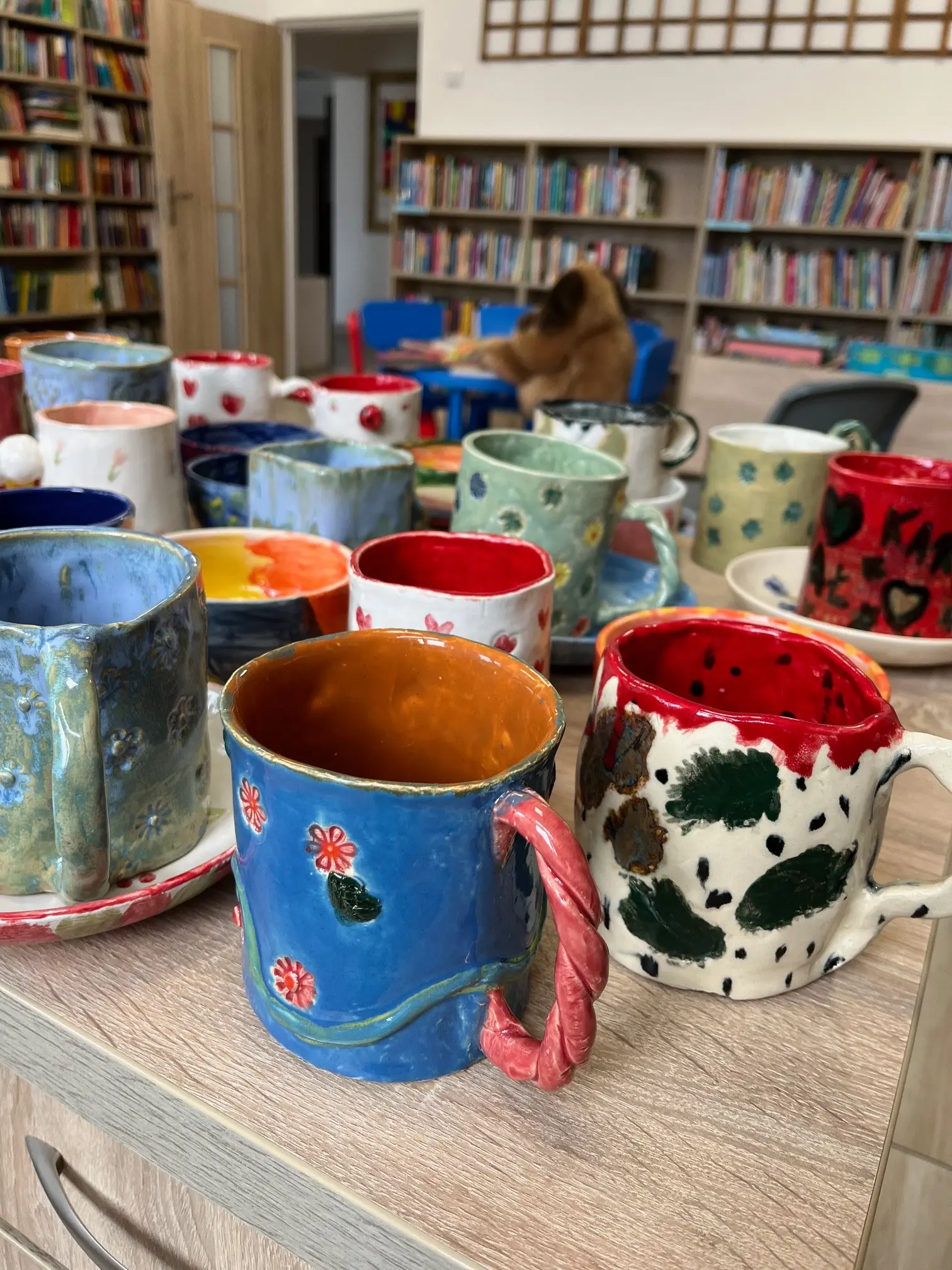 📢📢📢ATTENTION, ATTENTION📣📣📣, 📢📢📢UWAGA, UWAGA 📣📣📣od dzisiaj biblioteczne zbiory wzbogacone zostały o przepięknie barwne i niezwykle piękne ceramiczne naczynia😍. Prosto z pracowni Magia gliny na regałach tuż obok książek miejsca zajęły świeżo wypalone ceramiczne dzieła. Szkoda, że na krótko! ZAPRASZAMY DO ODWIEDZENIA BIBLIOTEKI, cuda cudeńka wykonane przez uczestników warsztatów ceramicznych organizowanych w bibliotece czekają na swoich autorów.
