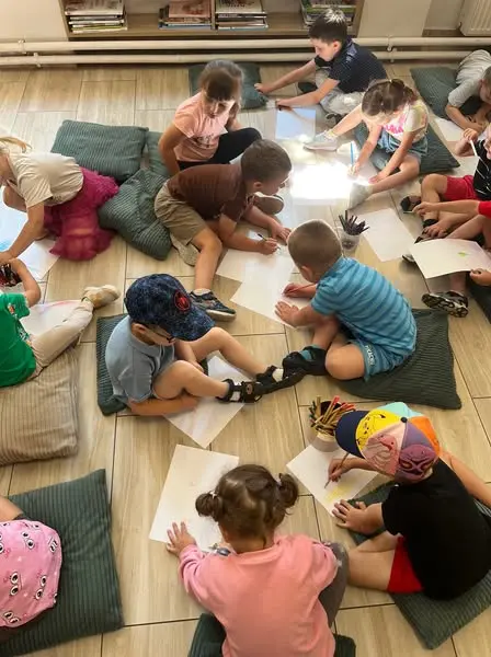 O bezpiecznych wakacjach, piciu wody, używaniu kremów z filtrem, zawartości plecaka bezpiecznego podróżnika i wielu różnych wakacyjnych przygodach rozmawialiśmy 14.07.2025 podczas spotkania w Bibliotece z przedszkolakami Przedszkole i Żłobek Mali Odkrywcy w Krzaku w Krzaku. Dzieci bardzo lubią wakacje i chętnie dzieliły się wspomnieniami z różnych wyjazdów, o tym co wydarzyło im się ciekawego albo niespodziewanego podczas wypraw z rodzicami itp. Razem z Leonardem dla przyjaciół Lelkiem, bohaterem książeczki pt. "Pierwsza pomoc z Lelkiem", którą napisała Monika Mazur, zilustrowała Edyta Demurat, Wydawnictwo Magiczne, (którą bardzo polecamy ) czytaliśmy i rozmawialiśmy o pierwszej pomocy, nie tylko podczas wakacji, w razie oparzeń, przegrzania słonecznego, użądleń, stłuczeń itp. Dzieci poznały nr alarmowe 112, 997,998, 999. Był czas na głośne czytanie, malowanie przyjaciela na wakacjach albo rodziny